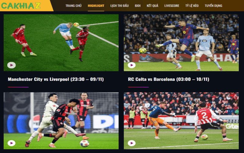 Cakhia Live tổng hợp các pha bóng đẹp, bàn thắng và những tình huống quyết định trong trận đấu. Bạn có thể dễ dàng xem lại highlight sau trận, đảm bảo không bỏ lỡ những khoảnh khắc đáng nhớ.