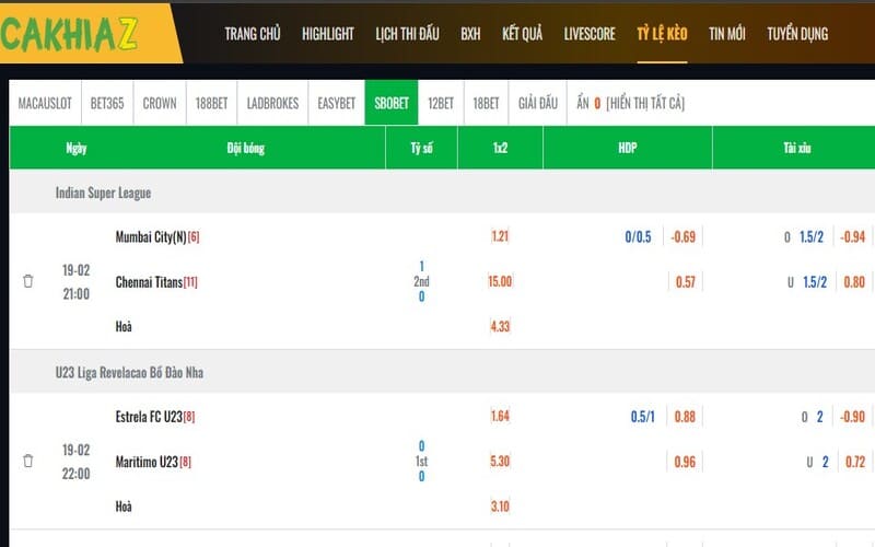 Tỷ lệ kèo trực tuyến cập nhật liên tục