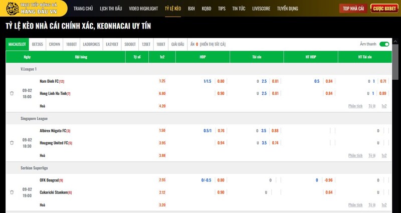 Mỗi khi nhà cái điều chỉnh, bảng kèo trên trang đổi ngay lập tức. Kèo tăng thì hiện màu xanh, kèo giảm thì chuyển đỏ – chỉ cần liếc mắt là nắm được xu hướng. Từ kèo châu Á, châu Âu, tài xỉu cho đến phạt góc, thẻ phạt… tất cả đều có đủ. Tôi không còn phải mở thêm trang khác để so sánh như trước.
