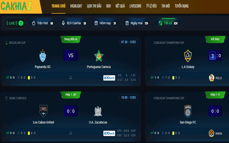 - Bước 3: Duyệt danh sách các trận đấu mới nhất hoặc sử dụng thanh tìm kiếm để tìm trận đấu cụ thể.
