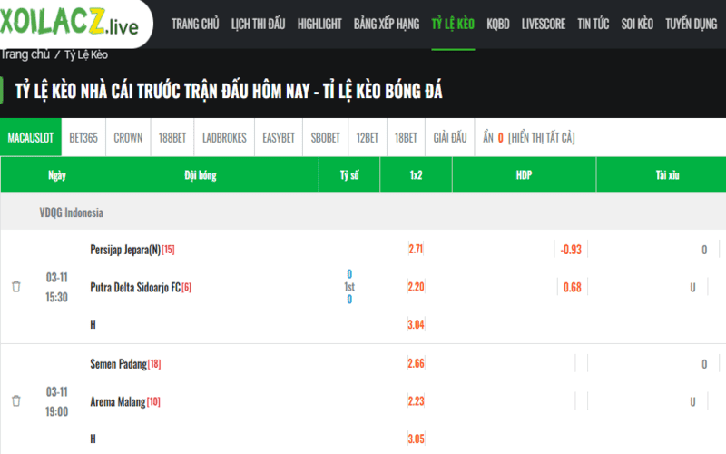 Mỗi trận đấu đều có tỷ lệ kèo riêng được cập nhật thường xuyên dựa trên phong độ, lực lượng, lịch sử đối đầu và các yếu tố khách quan khác. Vì vậy, việc theo dõi tỷ lệ kèo hôm nay giúp người chơi: